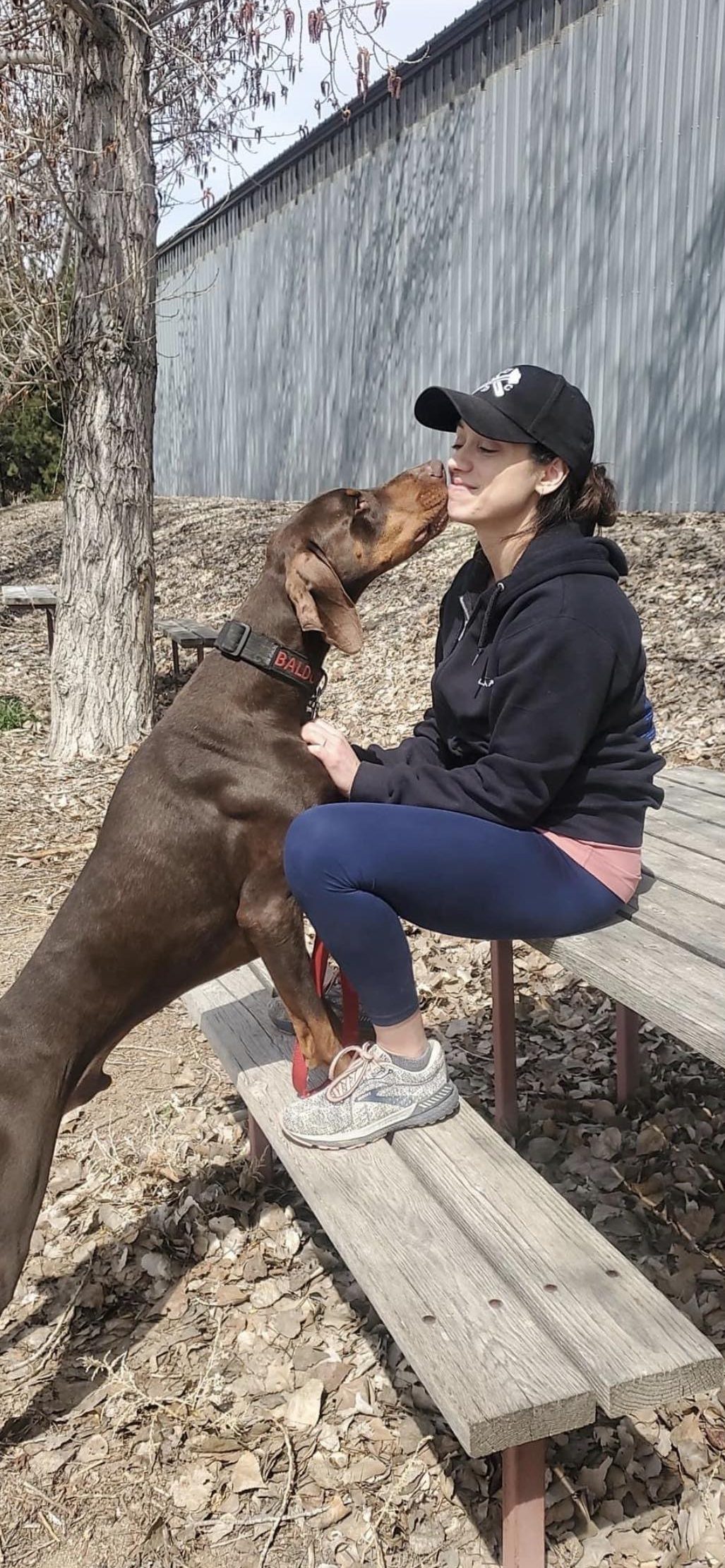 After her last mare retired, Izzy found herself thrown into a very similar world – dog sports. In 2018, a Doberman puppy landed in her lap, which officially started her agility and dog training adventure. A year into raising Baldur, Izzy found herself with a 90lb velociraptor, which led her search for dog sports that might help with harnessing his energy.