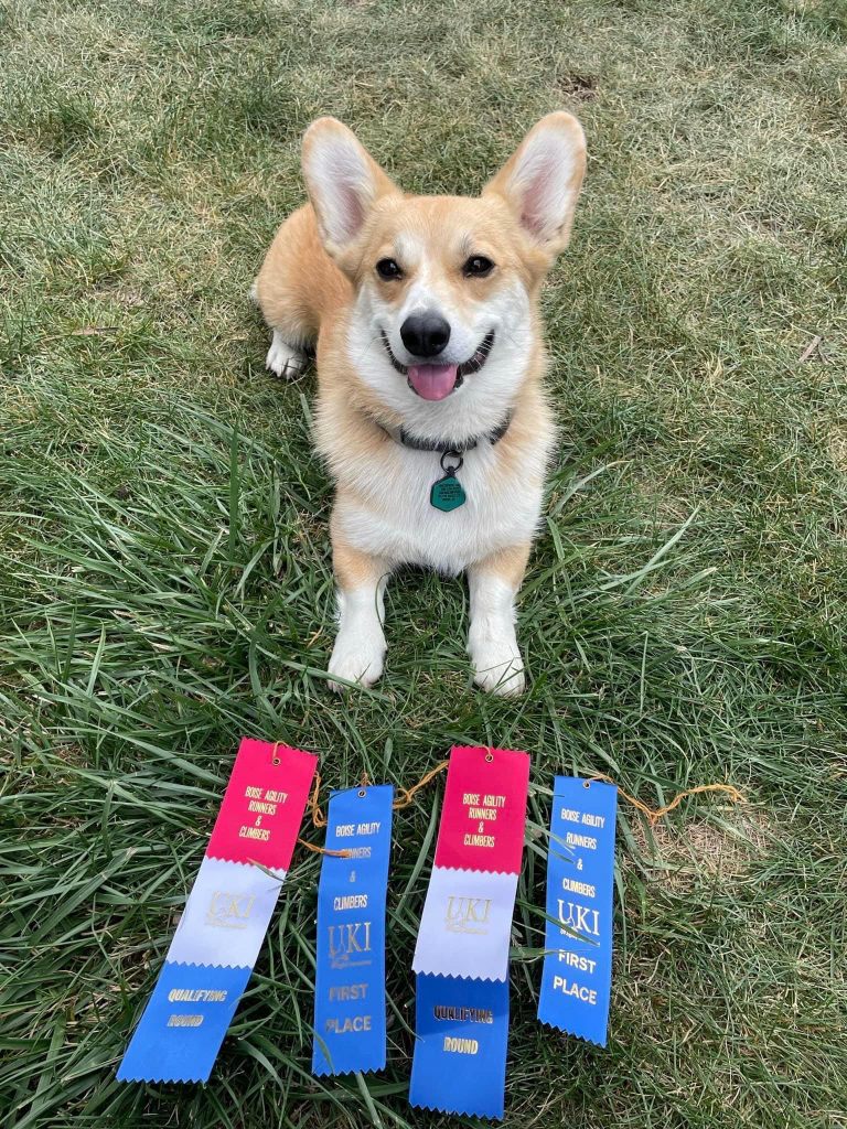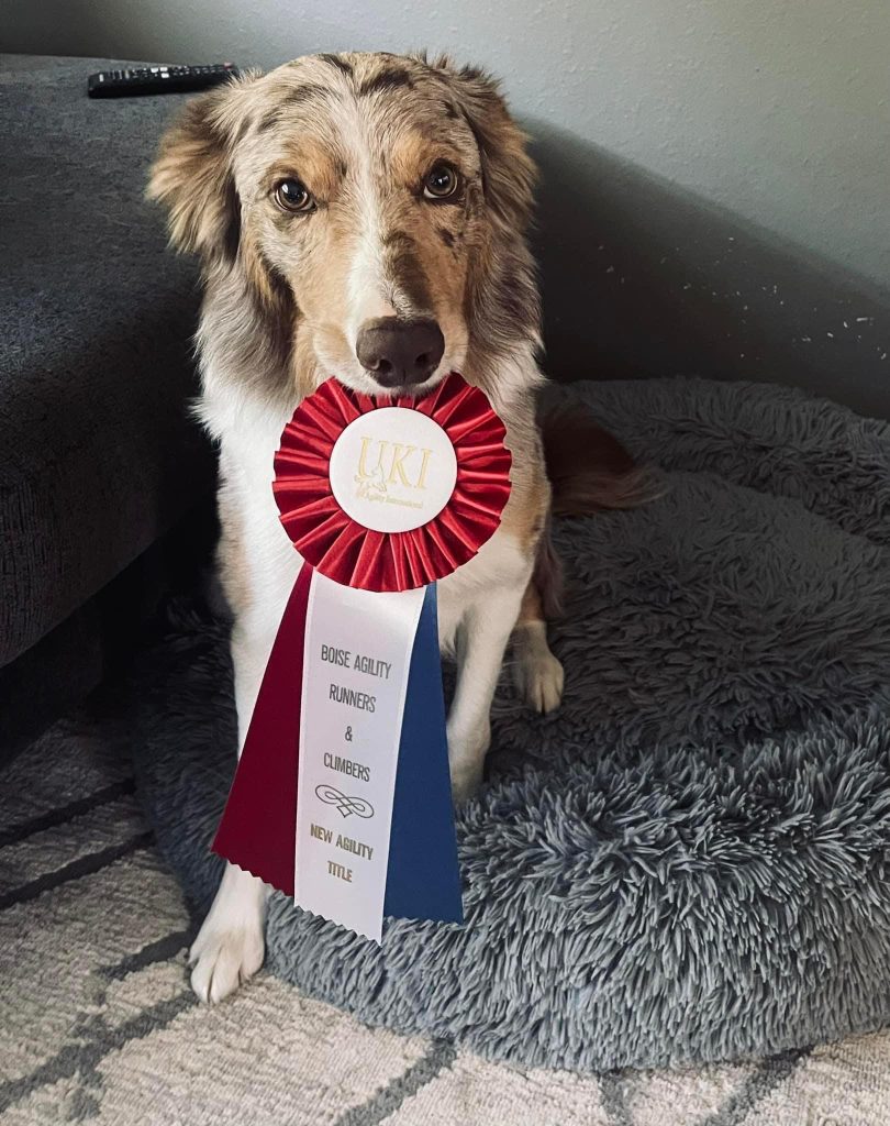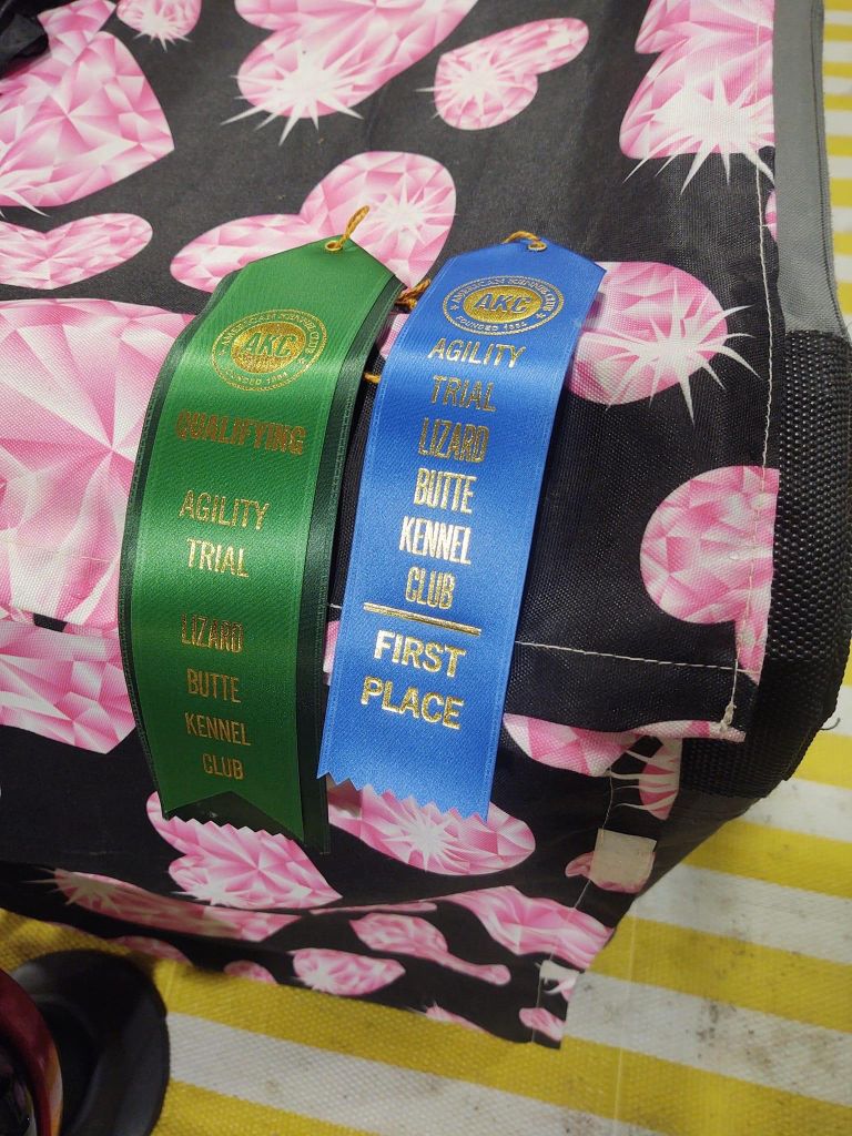 New Titles! Carolina and Peanut earned their first title at the local NADAC trial. Izzy and Baldur earned some new NADAC titles!