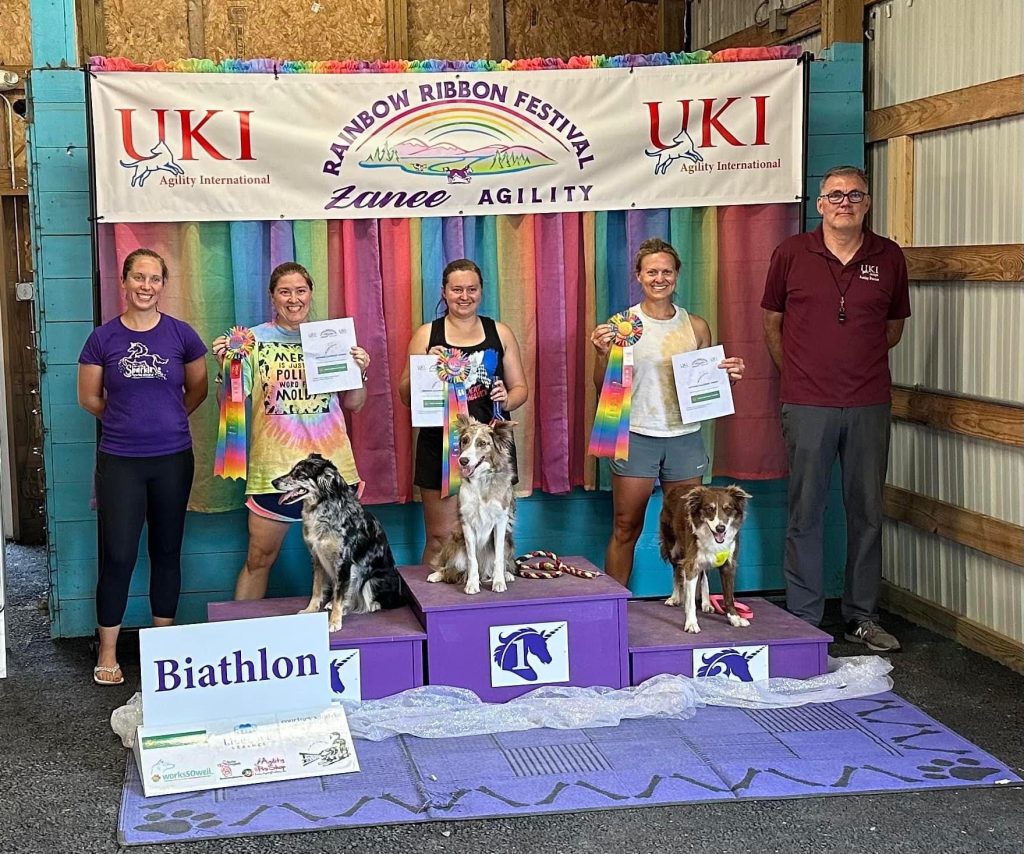 Projekt Performance dogs attend the Rainbow Ribbon UKI festival and have outstanding results! Izzy and Baldur- Rainbow Ribbon finalists, 1st place biathlon, 1st place master series, 1st place overall festival champion. Brea and Mackenzie- Rainbow Ribbon finalists. Lexi and Hoosier- Rainbow Ribbon finalists. Lexi and Rev- 3rd place overall festival team. Lexi and Jiffy- Rainbow Ribbon finals 3rd place large dog, 1st place biathlon, 2nd place master series, 1st place overall festival champion, International Agility Champion title.