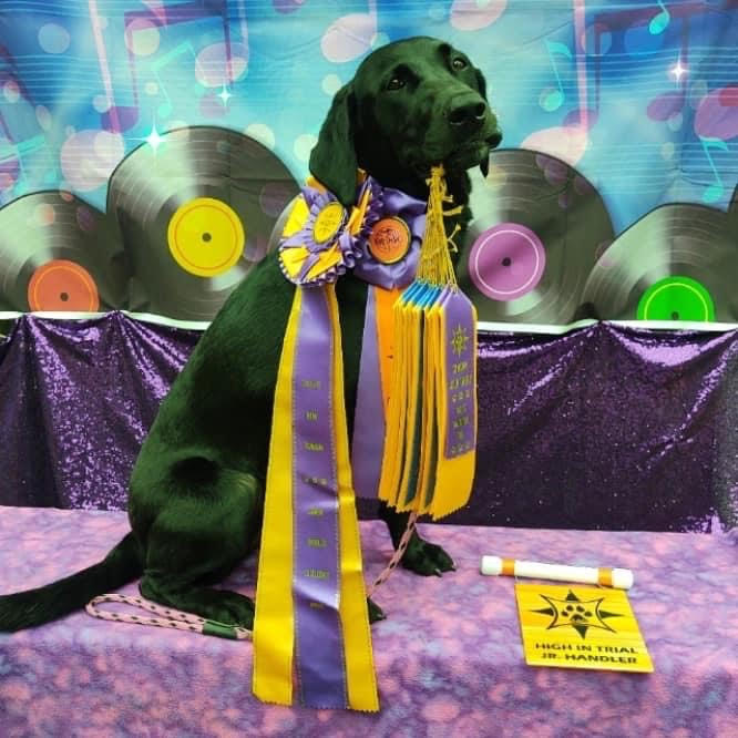 Basil the lab that had all of her agility training done by Lexi through our day train program had her debut trial! She qualified in almost every class she ran and earned her first title!